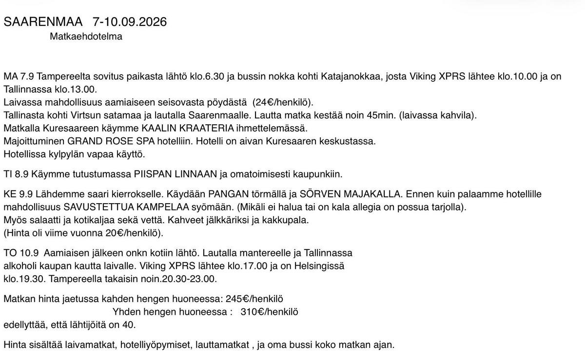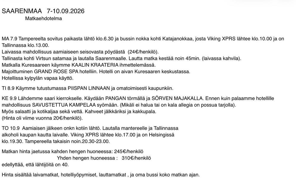 Lisätiedot tämän linkin takaa. Yksittäiset ilmoittautumiset www.matkapojat.fi/ekl