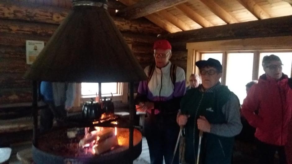 Aivan ensimmäiseksi meitä hellittiin Harrin keittämillä nokipannukahveilla ja olihan se Matti hommannut pullaakin tarjolle. Tulikuuma kahvi maistui tosi hyvältä kun kaikkilla tuntui olevan vähän viluinen olo koska sää oli melko sateinen ja kylmä.